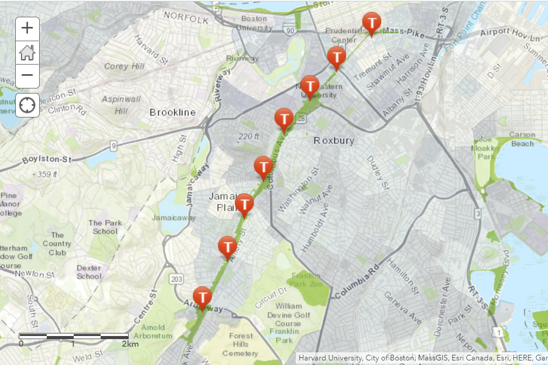 Between Green Street and Forest Hills Stations, closest to Forest Hills..